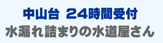 中山台で早くて安い水道修理業者をお探しの方は当店までお問い合わせください。蛇口の水漏れ、トイレつまり、排水口の溢れ、パイプ修理など、中山台での水道トラブルは最短15分到着です。中山台は24時間受付。中山台エリアは見積もり無料、出張費0円でスタッフがかけつけます。中山台にお住まいの方で水廻りのお困りごとはご相談ください。